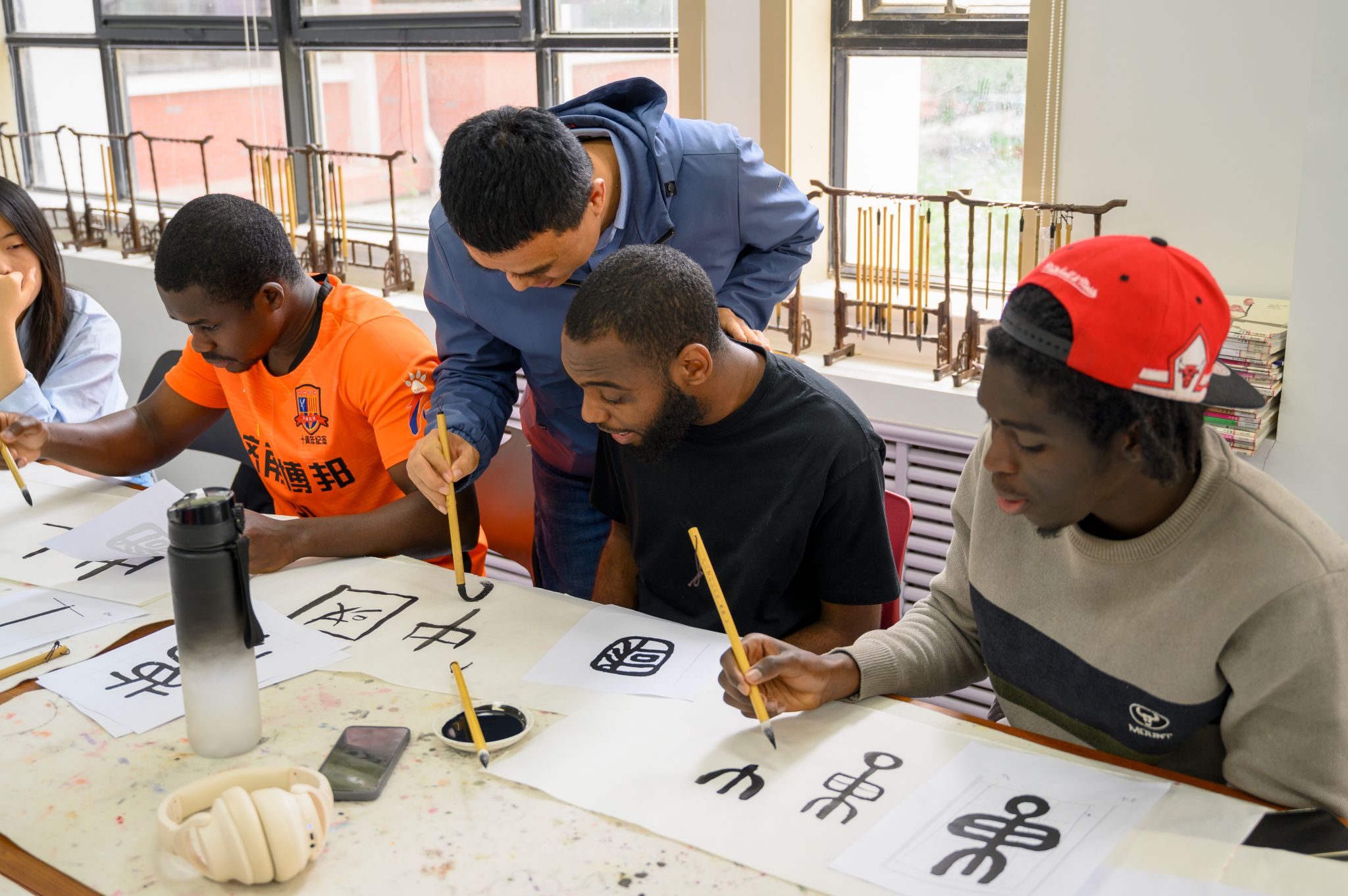 为迎接联合国第16个“国际中文日”,加深留学生对中国文化的了解,4月17日,国际交流学院以“墨香传情,‘荷’你相遇”为主题,组织开展了留学生书画体验活动。来自古巴、赤道几内亚、几内亚比绍、吉尔吉斯斯坦等国的留学生以笔墨为舟,探寻中华文化千年之美。
