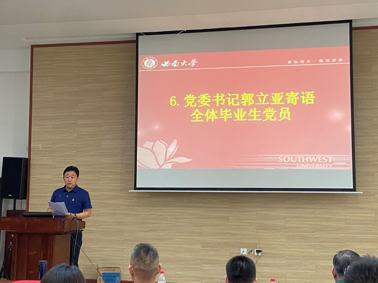 2022年6月10日下午15:30,西南大学体育学院天生星火党员服务队换届仪式暨毕业生党员专题教育活动在体育学院109报告厅举行。学院党委委员、党支部书记、全体学生党员和全体毕业生党员参与此次会议,学院党委副书记、纪委书记张剑兰担任主持人