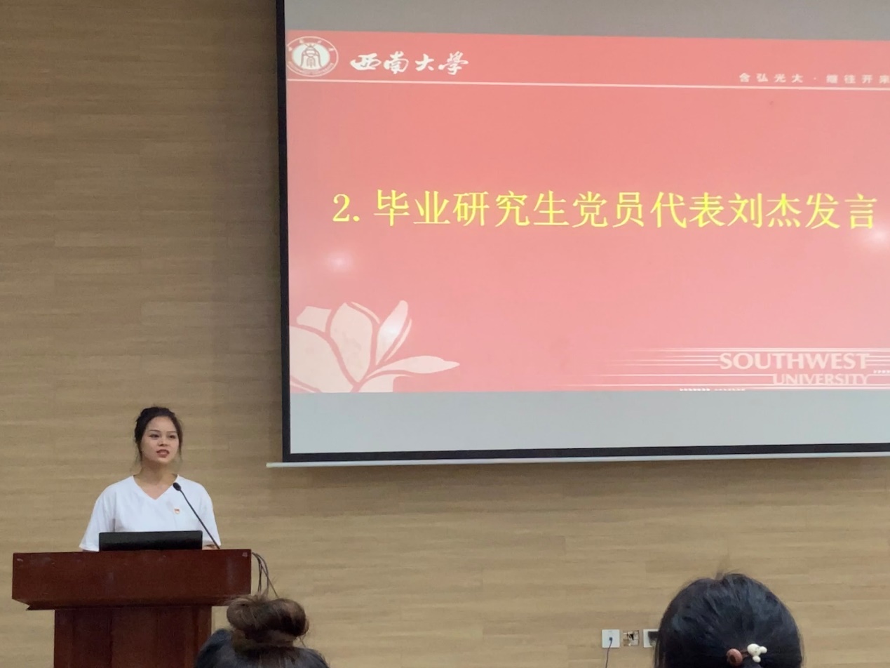 第二阶段,学院组织毕业生党员进行专题教育活动。组织员李进为毕业生党员做组织关系转接专题培训,刘杰同志作为毕业研究生党员代表发言