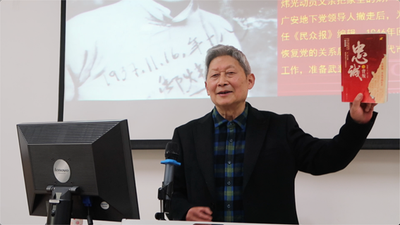 此外,丰教授还向我们介绍了他的父亲,一名优秀的中共党员。在革命事业中,父亲丰炜光奉献自我,在任广安县代市镇特支书记时,积极开展党的地下工作,准备武装起义,1948年8月10日丰炜光在广安被捕,关押在重庆渣滓洞监狱,“11·27”大屠杀中,31岁的他冲向机关枪,企图用自己的身体掩护部分同志逃生,机关枪扫射之后,凶残的敌人又打开牢门,在一息尚存的丰炜光身上浇上汽油并点燃,临终前,他将一名小孩掩护在自己的身下。