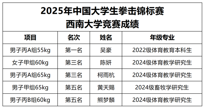 7月25 日,2025年中国大学生拳击锦标赛在西安外国语大学长安校区顺利落下帷幕,学院拳击代表队在为期六天的激烈比赛中敢打敢拼,经过顽强拼搏,斩获1金2铜,以及2个第五名的优异成绩,展现了一直以来严于律己的训练成果。