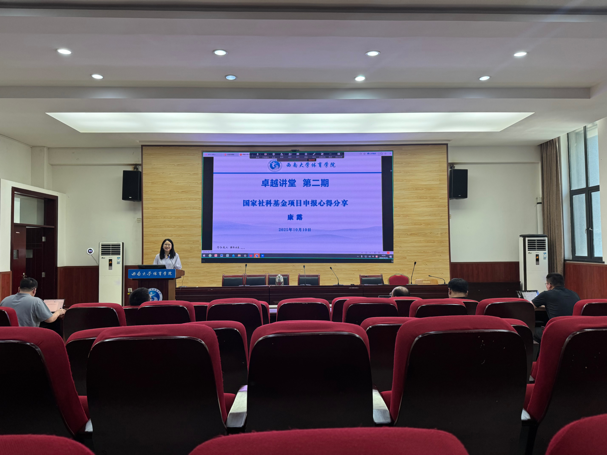 10月10日下午,学院举行第二期“卓越讲堂”,邀请国家社科基金青年项目获得者康露老师分享项目申报心得体会,活动由学院党委书记张其光主持。