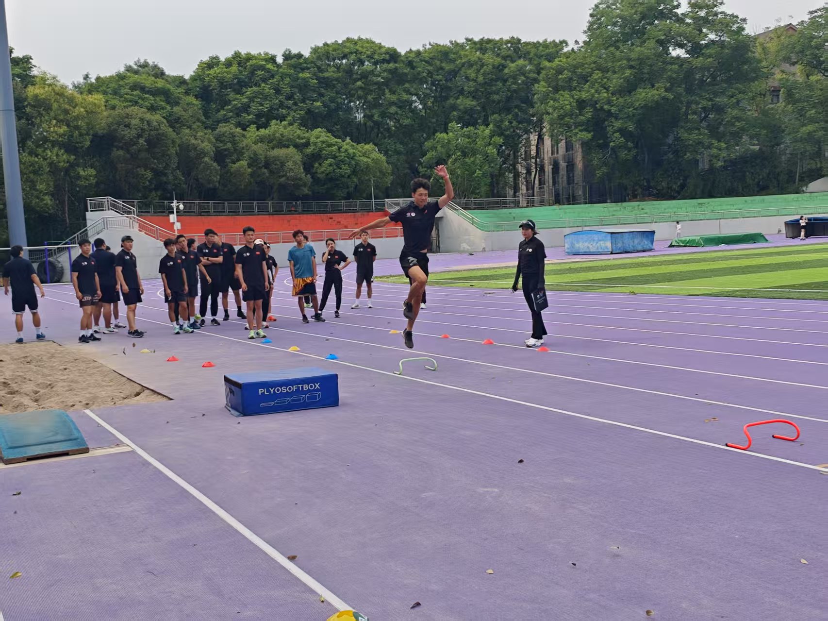 此次培训吸引了来自校内校外的29名学员参与。培训采取线上与线下相结合的教学模式,其中,线上理论学习阶段于2025年6月8日至2025年6月12日提前结束;线下课程邀请到西南大学赵棚川老师,西南大学胡志英老师两位田径专家进行授课,为学员提供了涵盖田径项目(短跑、接力、中长跑、竞走、跨栏、跳远、跳高、三级跳远、撑竿跳高、铁饼、铅球、标枪、链球等)的基础技能及教学步骤、训练实践、训练计划制定等多个方面的讲授,科学全面,注重了理论与实践的结合。在培训期间,天气十分炎热,学员们顶着烈日坚持参训,充分展现了学习热情和刻苦精神。