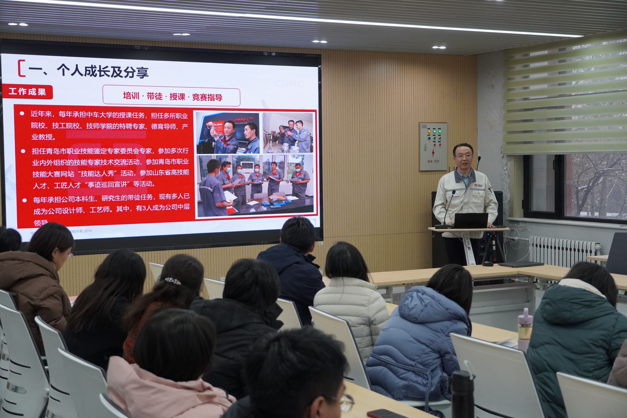 随后,郭锐作了题为《坚定理想 立足岗位 深化产业工人队伍建设》的专题讲座。他深刻阐释了新时代工匠精神的核心内涵,系统解读了中共中央、国务院《关于深化产业工人队伍建设改革的意见》,并结合数十年轨道交通装备制造经验,生动讲述了自己深耕技术革新、坚守质量把控的奋斗历程,鼓励师生深耕专业、精益求精,为技能人才成长注入强劲动力。