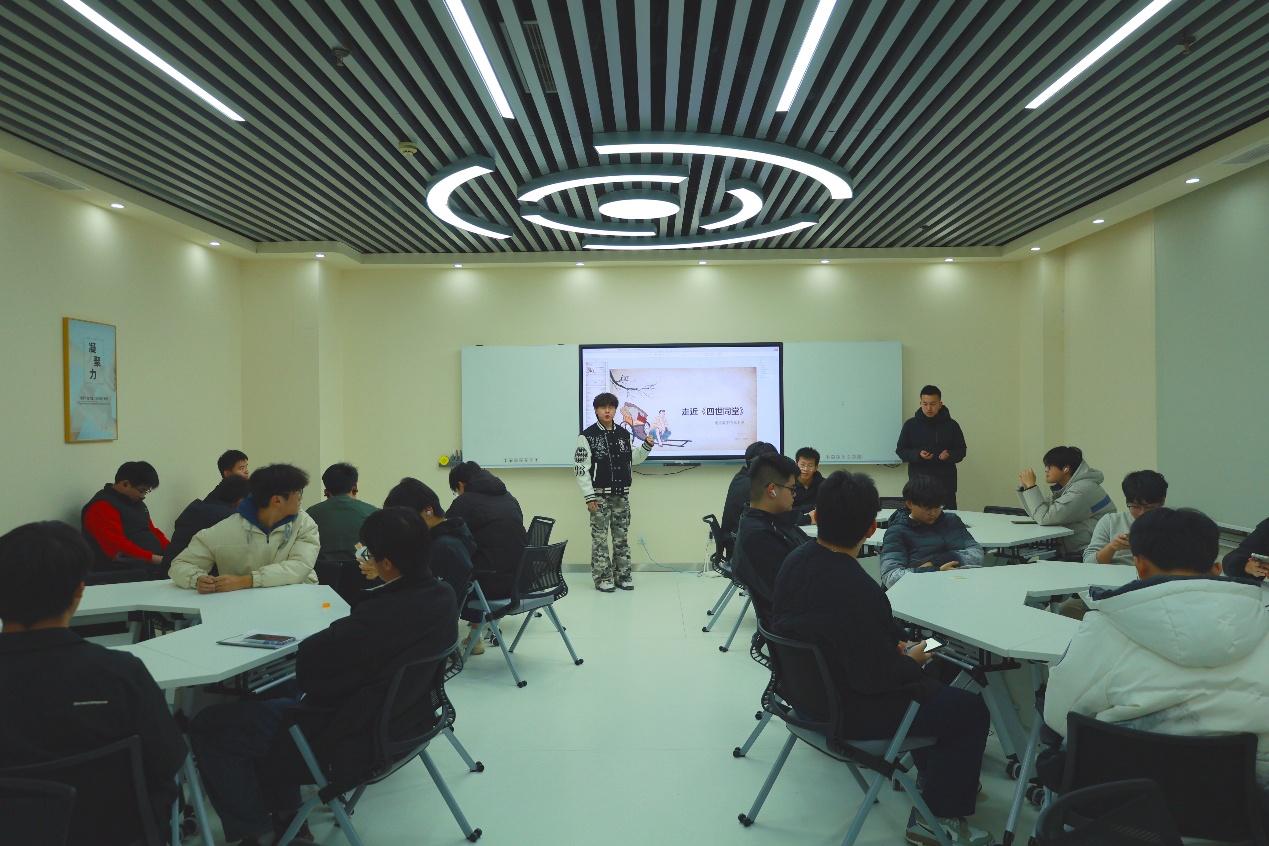活动中,三位同学立足经典文本,结合自身感悟,为现场同学带来启发。刘沛霖以《四世同堂》为切入点,剖析了抗日战争时期北平百姓的家国情怀与民族气节,解读作品中“坚韧不屈”的精神内核;《边城》的分享者薛晨用诗意的语言勾勒出湘西水乡的淳朴风情,探讨了人性美与命运的永恒命题;《全球通史》的分享者邵子轩则跳出文学范畴,从宏观历史视角出发,串联起不同文明的兴衰脉络,启发大家以史为鉴审视当下世界。