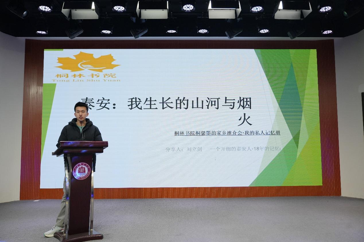 分享会中,刘立剑以“泰安的山河与烟火”为主题,从老泰安站切入视角,生动描绘出泰安生机蓬勃的文化精神与家国民安的人间烟火气;高硕聚焦临沂的风土人情,从现代城市步入古今名胜,从名人名事深入古今历史,使现场同学身临其境;朱宜威围绕滕州美景,引领同学们从千年古迹穿入历史渊源,串联起名胜古迹与红色历史,引发同学们的共情与动容。