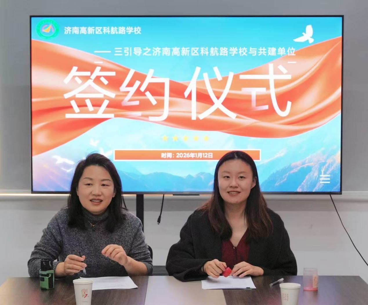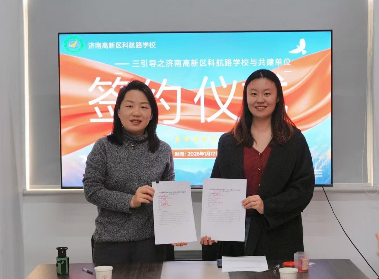 为践行全环境立德树人“三引导”行动,助力学生成长共同体建设,1月12日,桐林书院联合孙村街道翡翠雅郡北区社区、济南高新区科航路学校签署联创共建协议,翡翠雅郡北区社区党总支书记田娜、济南高新区科航路学校副校长崔心梅、主任贾亚楠,桐林书院团总支书记赵呈然、辅导员张路宽以及社区代表、书院学生代表、培训机构代表参加仪式。